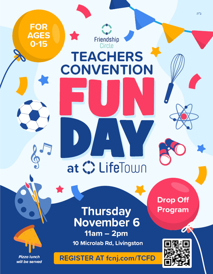 Baking Davening Art Lunch Drumming STEM Gym Thursday, November 6 11:00am-2:00pm LifeTown, 10 Microlab Road, Livingston Register